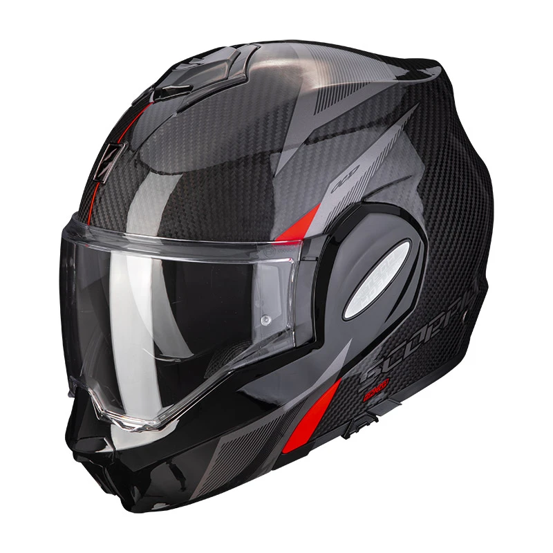 Il modello “180°” di Scorpion viene proposto anche con la calotta in Carbonio. Exo Tech Carbon è la versione leggera con le stesse caratteristiche e peculiarità del modello classico. Piccolo, elegante, con un reale look da casco integrale, il cuore lo stesso con un tocco di nobilità grazie alla trama del carbonio. Exo Tech carbon viene proposto con la predisposizione per l’EXO-COM che si armonizza, perfettamente, con il design del sistema di comunicazione e quello del casco.
